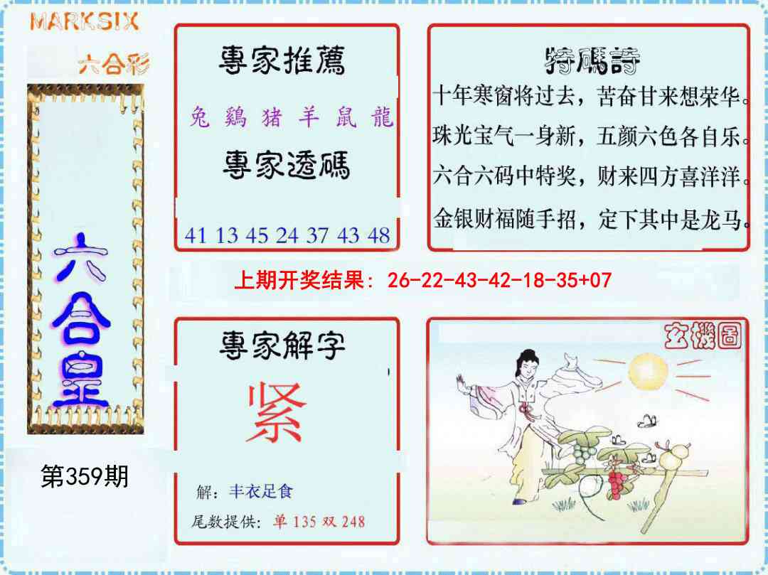 359期: 澳门六合宝典彩圖信封【特码玄机】每期自动更新
